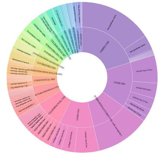 Explore how search volume of 100+ niches is distributed over top 20 domains, subpages, keywords